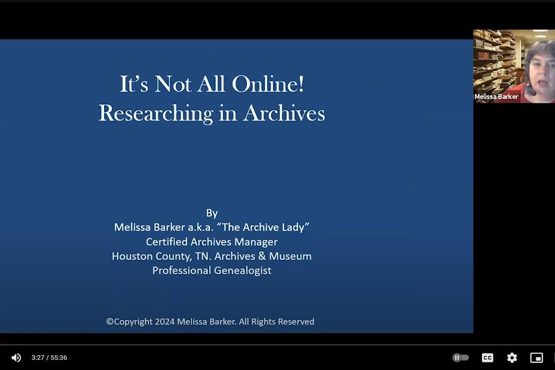 AAGGKY October 2024 3rd Saturday Presentation by Melissa Barker, It’s Not All Online: Researching in the Archives, 10/19/24. Melissa Barker “The Archive Lady” is certified archives manager for Houston County, TN Archives & Museum, Professional Genealogist.